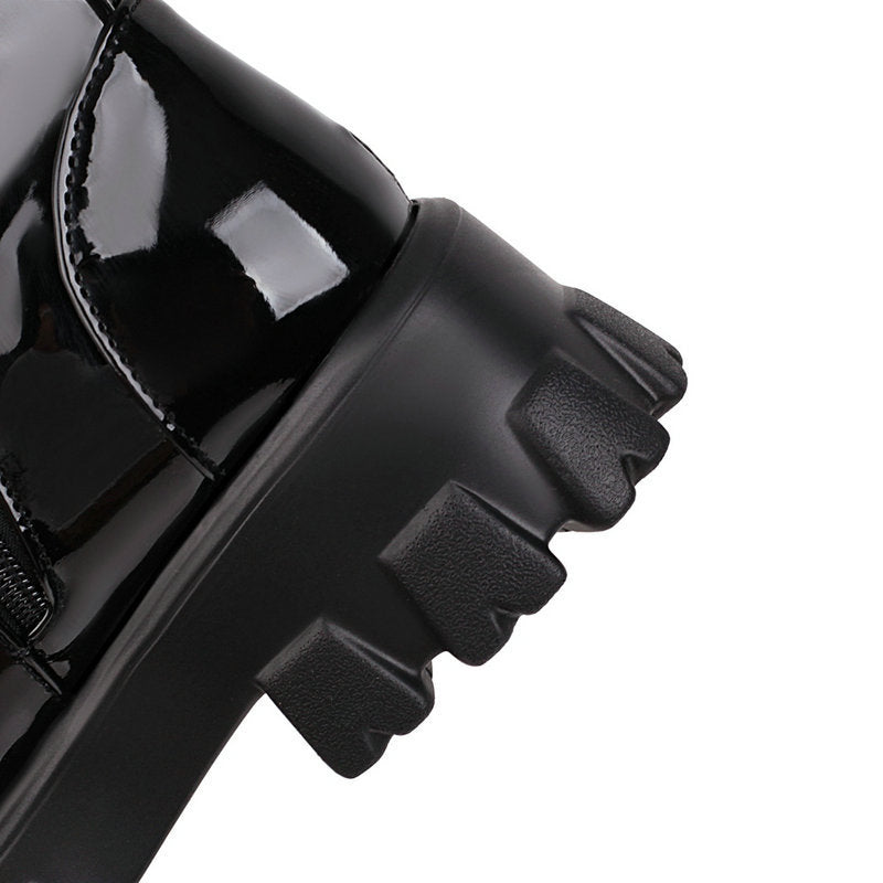 Patent Leather Martin Boots Fashion Front Lace-up Platform Small Man
